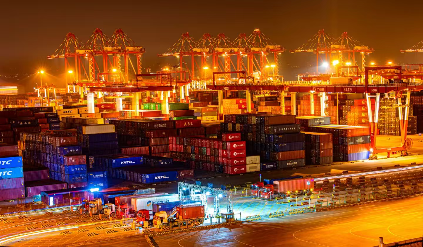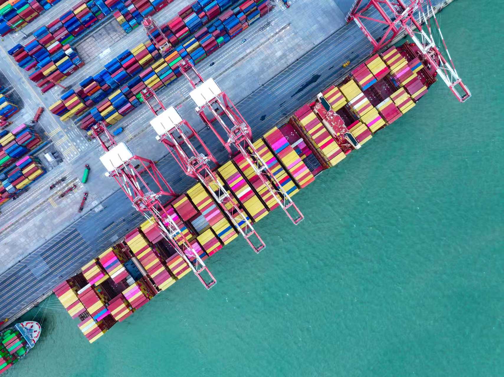 画面中正展示港口装卸作业。