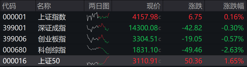 15:01 A股收盘丨上证50尾盘一度涨超2%