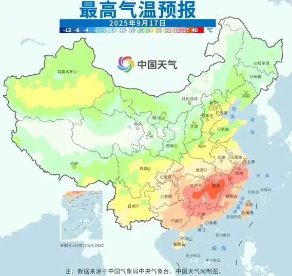 而在冷空气真正发威之前,江南、华南的“秋老虎”依旧顽固。目前副热带高压仍掌控南方多地,今明两天高温范围还会有所北扩,长江中下游高温短暂返场,不少城市高温连连。